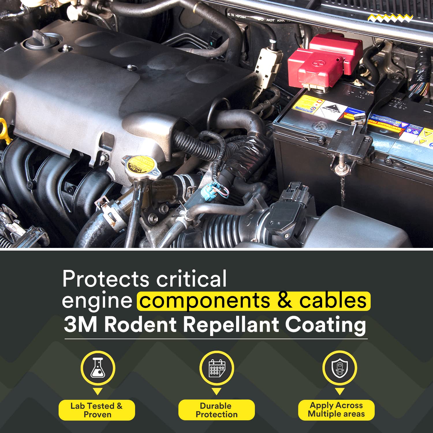 This powerful spray creates a protective layer on your car’s wires, engine area, and corners that rats simply hate. Made with scientifically proven ingredients like Denatonium Benzoate (the world’s most bitter substance) and natural camphor, it keeps rodents away without harming them – or your car.