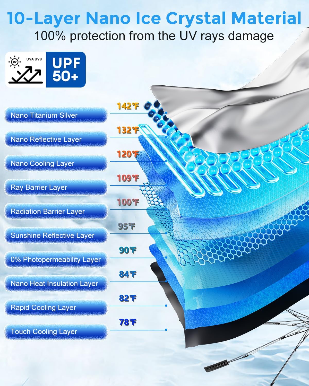 Unlike flimsy sunshades that tear or sag, SunBlock NanoCool is made with high-density reflective fabric and reinforced umbrella ribs for long-lasting performance. The spring-loaded structure enhances flexibility, making it resistant to wear, bending, and high temperatures. Designed for daily use in all weather conditions, it provides reliable protection season after season.